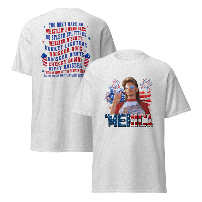 Perfect for backyard BBQs, tailgate parties, lake house weekends, or just lookin’ good while settin’ off questionable fireworks, this shirt delivers freedom, fun, and full-on ‘Merican energy. If you live for summer, love Joe Dirt, and know how to rock denim shorts with confidence, this is your official tour merch.