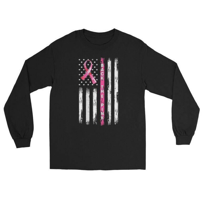 Back The Pink Ribbon American Flag Breast Cancer Awareness Long Sleeve Shirt