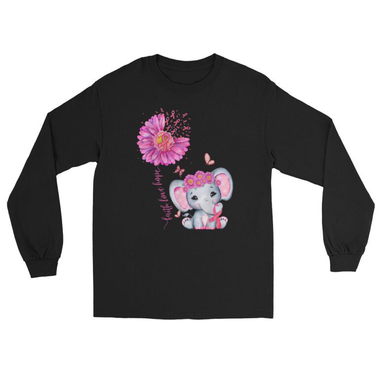 Breast Cancer Cute Elephant With Sunflower And Pink Ribbon Long Sleeve Shirt