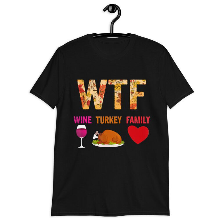 Funny WTF Wine Turkey Family Funny Wine Lover Thanksgiving Day T-Shirt.