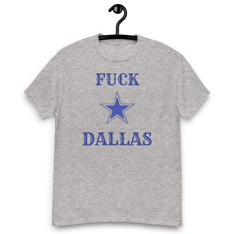 “Looking for a reliable and stylish staple? Our 100% cotton men’s classic tee is the perfect pick to elevate your wardrobe. Crafted with precision, it ensures a structured and sharp look, making it an ideal match for your layered streetwear ensembles. Embodying both comfort and trendiness, this tee boasts a fabric weight of 5.0–5.3 oz/yd² (170-180 g/m²), with open-end yarn and a tubular fabric design. It features taped neck and shoulders, as well as a double seam at the sleeves and bottom hem for added durability. Get your hands on this classic tee that not only makes a statement but also supports your comfort throughout the day. Express your spirit with the George Kittle ‘Fuck Dallas’ T-shirt and showcase your unwavering team loyalty in style!”