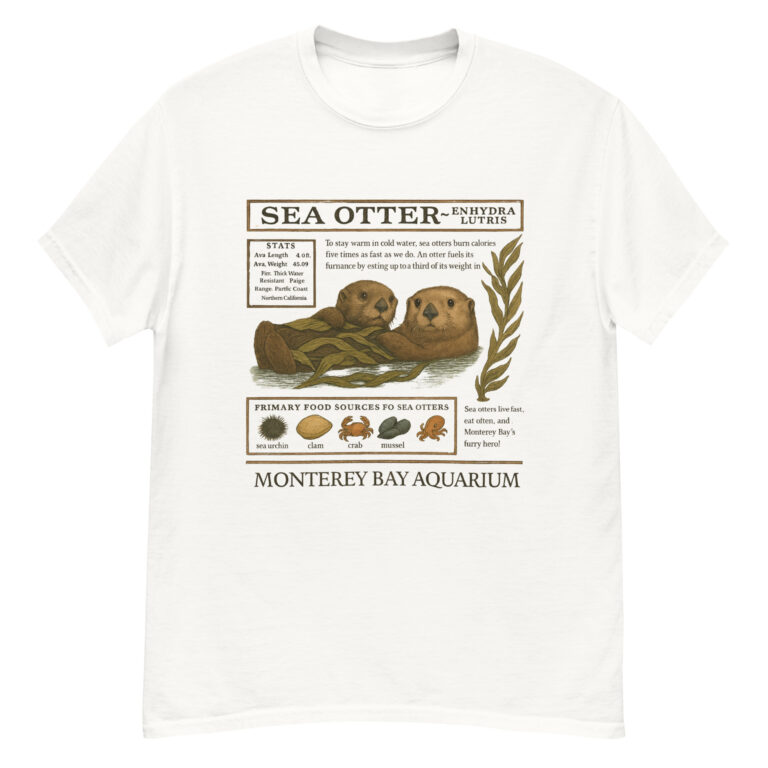 Taylor Swift’s influence on fashion trends is undeniable. Every piece she wears seems to skyrocket in demand, but the Monterey Bay Aquarium Otter Shirt is special because it connects fandom to a real-world cause. The design’s marine life imagery and vintage print bring together two of Taylor’s passions — storytelling and environmental awareness.
