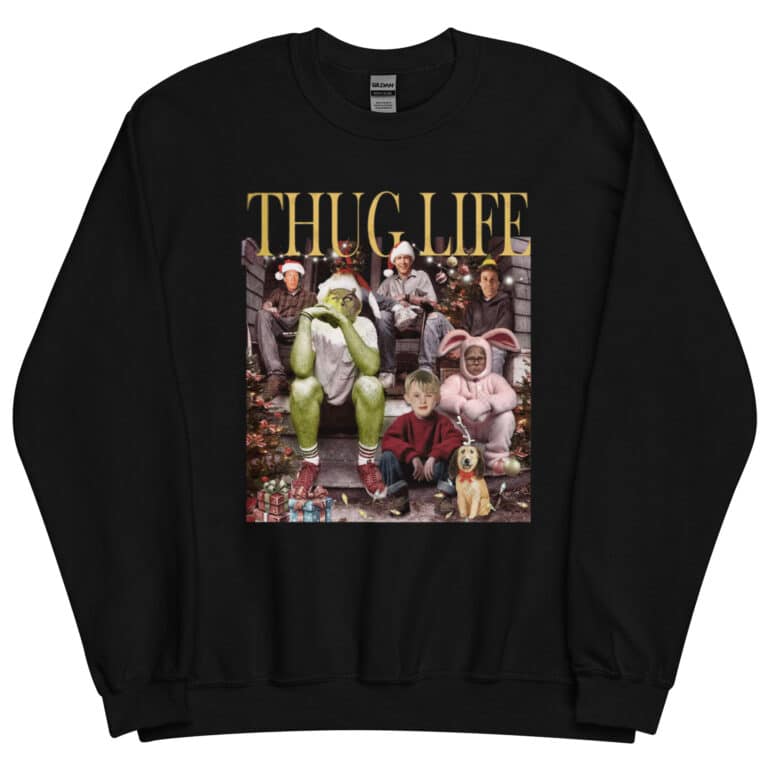 This sweatshirt isn’t just about keeping warm; it’s about making a statement. Combining holiday imagery with the edgy “thug life” aesthetic, this sweatshirt is sure to turn heads at any holiday event. Here’s what makes it stand out: